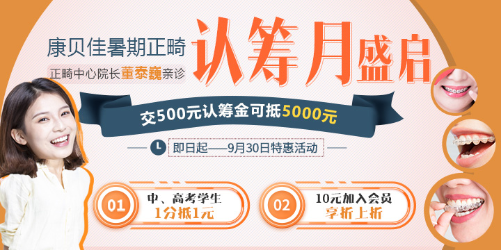 认筹正畸月特惠活动,放价到底500元认筹金,可抵5000元
