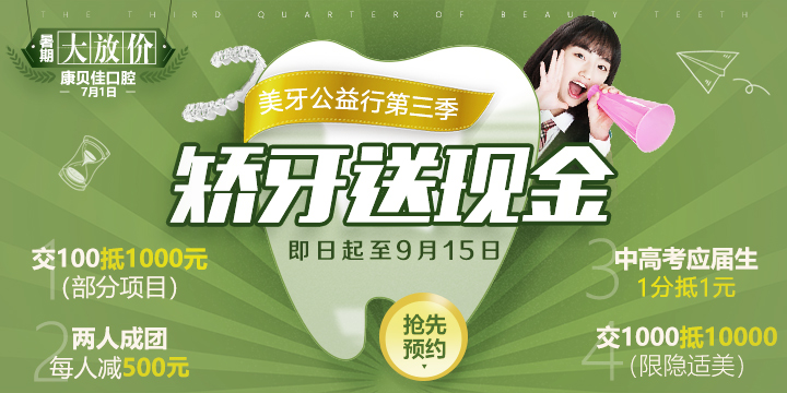 - 矫牙送现金!暑期矫牙季 康贝佳福利发放中
